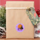 este adesivo tem imagens clássicas do Dia das Bruxas de um jack-o-lanterno desenhado e colorido, chapéu de bruxa, máscara de festa e vassoura, laranja roxo e preto