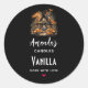 Velas, sabões ou adesivos para produtos de cozinha com uma ilustração legal e assustadora de uma casa assombrada de madeira. Cercados por grandes abóboras laranja e árvores com folhas laranja. Janelas com luzes laranja adicionam um brilho agradável. Design de Halloween divertido.
