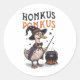 Vintage Halloween, mãe ganha com a peça de palavras: "honkus ponkus". Ganso com chapéu de bruxa e caldeirão. Um ganso bonitinho de Halloween.