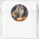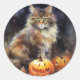 Adesivo Redondo Halloween Maine Coon Cat Com Pumpkins Assustado
