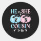 Adesivo Redondo Halloween Pumpkin Gender Reveal He Or She Cousin T