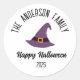 Adesivo Redondo Halloween Purple Witch Hat Nome Personalizado