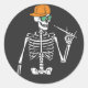 Adesivo Redondo Halloween Skeleton Rock Hand Jogando Tambores