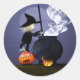Vestidos para o Dia das Bruxas com a minha trabalho de arte de uma bruxa em uma abóbora mexendo com seu caldeirão fervente.