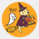Adesivo Redondo Halloween Yellow Labrador and Broom