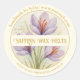 Elegant round sticker featuring a delicate saffron flowers illustration, designed especially for handmade saffron wax melts. Soft blush florals, warm cream tones, and refined typography create a timeless, artisan look perfect for small batch makers.