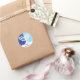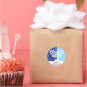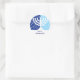 Uma menorah Hanukkah gráfica branca senta-se sobre um fundo azul de ventura neste adesivo. Dois tons de azul adicionam contraste aos flocos de neve e estrelas do fundo. Adicione sua própria mensagem personalizada de Chanucá por baixo e comece a colocar essa etiqueta em tudo! Disponível em postagens, cartões e outros favores correspondentes.