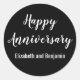Adesivo Redondo Happy Anniversary Couple's Names Black and White
