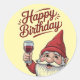 Adesivo Redondo "Happy Birthday" Wine-Toasting Gnome