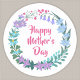 Adesivo Redondo Happy Mother's Day Floral Blue Pink Flower Wreath