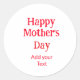 Adesivo Redondo Happy mother's day red add text simple minimal mom
