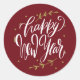 Adesivo Redondo Happy New Year Modern Calligraphy Wreath Burgundy
