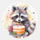 Adesivo Redondo Happy Raccoon com bolo de aniversário