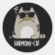 Adesivo Redondo Harmonia Funny Harmonica Cat Pun Dark BG