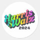 Harris e Walz Round Sticker. Esta alegre design do arco-íris é exatamente o que precisamos. Votem BLUE e recuperem seus direitos. Vamos avançar com este bilhete! VOLTA: VOTE AZUL 2024 é editável.