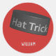 O disco de hóquei preto diz "que truque". Os adesivos podem ser personalizados com qualquer nome ou texto.