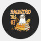 Adesivo Redondo Haunted By 67 Funny Reading Ghost And Pumpkin Hall