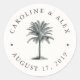 Os adesivos personalizados de casamento da Ilha Chic são projetados para combinar com nossa coleção de convites de casamento de Havana Palm, com os nomes dos casais e a data de casamento em uma elegante cinza de carvão em volta de uma ilustração de palmeira gravada de estilo vintage em verde de caçador negro para uma vibe de vintage da ilha.