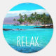 Adesivo Redondo Hawaii Blue Ocean Green Palm Trees Beach Relax