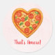 Heart Pizza Round Sticker | Red Checkered Wedding & Shower Favor Label