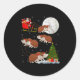 Adesivo Redondo Hedgehog Santa Sleigh Flying Funny Magical Christm