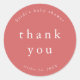 Este obrigado de chá de fraldas único e simples que você cola da Coleção Heidi é perfeito para um chá de fraldas simples ou um borrifador de bebês. O design vermelho de morango apresenta uma tipografia moderna, não adorada, com um estilo minimalista único. Personalize seus adesivos favoritos com o nome da futura mãe e a data do chá.