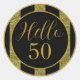 Adesivo Redondo Hello 50 Birthday Black Gold Glitter Stripes