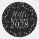 Adesivo Redondo Hello New Year's Eve Black and Silver Sparkle
