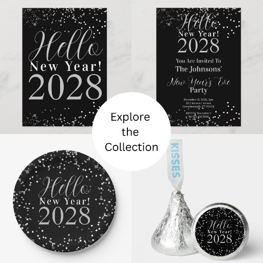 Hello New Year! Celebrate the arrival of the New Year with these stylish black and silver Party design. Featuring a glitter confetti effect sparkle design, they add a festive touch to any celebration. Perfect for ringing in the new year in style! Customize easily by using the easy to edit templates.