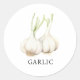 Este adesivo de erva apresenta alho aquoso com texto personalizado. Perfeito para rotular as especiarias da cozinha.