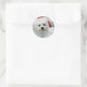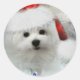 Este produto apresenta Hermes, um doce Cachorro Maltês. Ele está vestindo um Papai Noel olhando através de uma janela gelada na manhã de Natal.