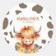 Adesivo Redondo Highland Cow Minha Primeira Festa de aniversário R