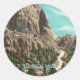 Cartaz Vintage mostrando a rodovia cênica para o Monte Rushmore na Floresta Nacional das Colinas Negras em Dakota do Sul. Reimpressas nestes adesivos.