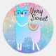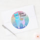 Adesivo Redondo Hipster Llama Rainbow Glitter Ombre