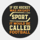 Os adesivos de Hockey Versus Football exibem textos de amarelo e ouro e dois bastões de hóquei. Este adesivo de hóquei diz que se o Hóquei no Gelo fosse um esporte fácil, seria chamado de futebol!