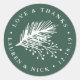 Fale os favores do seu casamento e agradeça as cartas com estes adesivos em verde-caçador, desenhados para coordenar com a nossa coleção de casamento Holly e Pine. Design apresenta um ramo de bagas ocas e uma tosse de pínus em branco em um fundo verde de caçador, cercado por sua escolha de texto personalizado, mostrado com "Amor e Obrigados" e seus nomes e data de casamento.