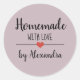Adesivo Redondo Homemade com amor, script roxo leve personalizado