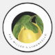 A etiqueta redonda na moda clássica apresenta um design moderno com limões ilustrados emoldurados em uma faixa branca redonda com texto personalizável. Mostrado com uma mensagem caseira personalizável do limoncello da família apresentado em fontes modernas em uma fronteira redonda complementar, você pode personalizar usando os campos fornecidos. Ideal para etiquetar seu limoncelo caseiro ou para usar para cozinhar, assar, presentes de cozinha caseira ou decoração.