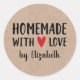 Um adesivo personalizado "caseiro com amor" de 3 polegadas em um fundo colorido kraft. Faça-o seu adicionando seu próprio nome. Um bonito toque final para todos os presentes feitos à mão. Projetado para você pelo Blackberry Boulevard.