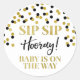 Sip Sip Hooray baby está no caminho chá de fraldas a favor do adesivo com o padrão de confete preto e dourado. Perfeito para um chá de fraldas decorar champanhe ou garrafas de vinho.