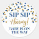 Sip Sip Hooray baby está no caminho chá de fraldas favor etiqueta adesiva com padrão de configuração azul e dourado. Perfeito para um chá de fraldas decorar champanhe ou garrafas de vinho.