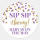 Sip Sip Hooray baby está no caminho chá de fraldas favor etiqueta adesiva com o padrão de configuração Purple e gold glitter. Perfeito para um chá de fraldas decorar champanhe ou garrafas de vinho.