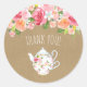 Hora do obrigado de chá, você favorece o adesivo com um belo bule de empilhamento de aquarela e flores em pinks de pastel macio sobre fundo de papel kraft. Todas as formulações podem ser alteradas para que isso funcione também para um chá de fraldas de chá ou para uma festa de aniversário temática de chá. Consulte a coleção de cheios para coordenar convites, envelopes, adesivos, notas de agradecimento, jogos de festas e muito mais.