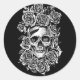 Human Skull Roses Goth Biker original ink Art Illustration round sticker