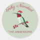 Um adesivo Feliz Navidad para o amante do beija-flor apresentando um beija-flor-aranha em um fundo branco creme. O estilo e o tamanho da fonte podem ser alterados clicando em "personalizar mais".