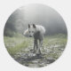 Pau branco siberiano clássico redondo. Husky Siberiano branco na floresta. Foto de Marek Szturc.