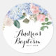 Adesivo Redondo Hydrangeas Azuis de Aquarela e Rosas Rosa Batismo