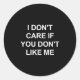 Adesivo Redondo I Don't Care If You Don't Like Me, Funny, Jokes, S