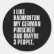 Adesivo Redondo I Like Badminton Lover German Pinscher Dog Owner F