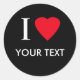 Adesivo Redondo I Love (seu texto) Customized Roupa